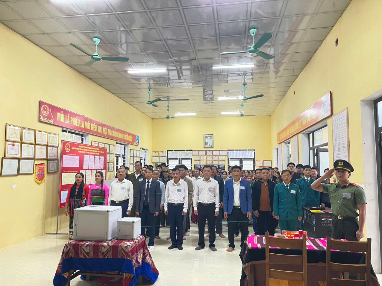 Công tác tổ chức bầu cử được cấp ủy, chính quyền địa phương quan tâm chỉ đạo sát sao. Các tổ bầu cử làm việc với tinh thần trách nhiệm cao, hướng dẫn cử tri thực hiện các bước bỏ phiếu theo đúng quy định, bảo đảm quá trình bầu cử diễn ra dân chủ, an toàn, đúng pháp luật. Lực lượng công an, dân quân và các đoàn thể cũng tích cực phối hợp giữ gìn an ninh trật tự, tạo điều kiện thuận lợi để cử tri yên tâm tham gia bỏ phiếu.