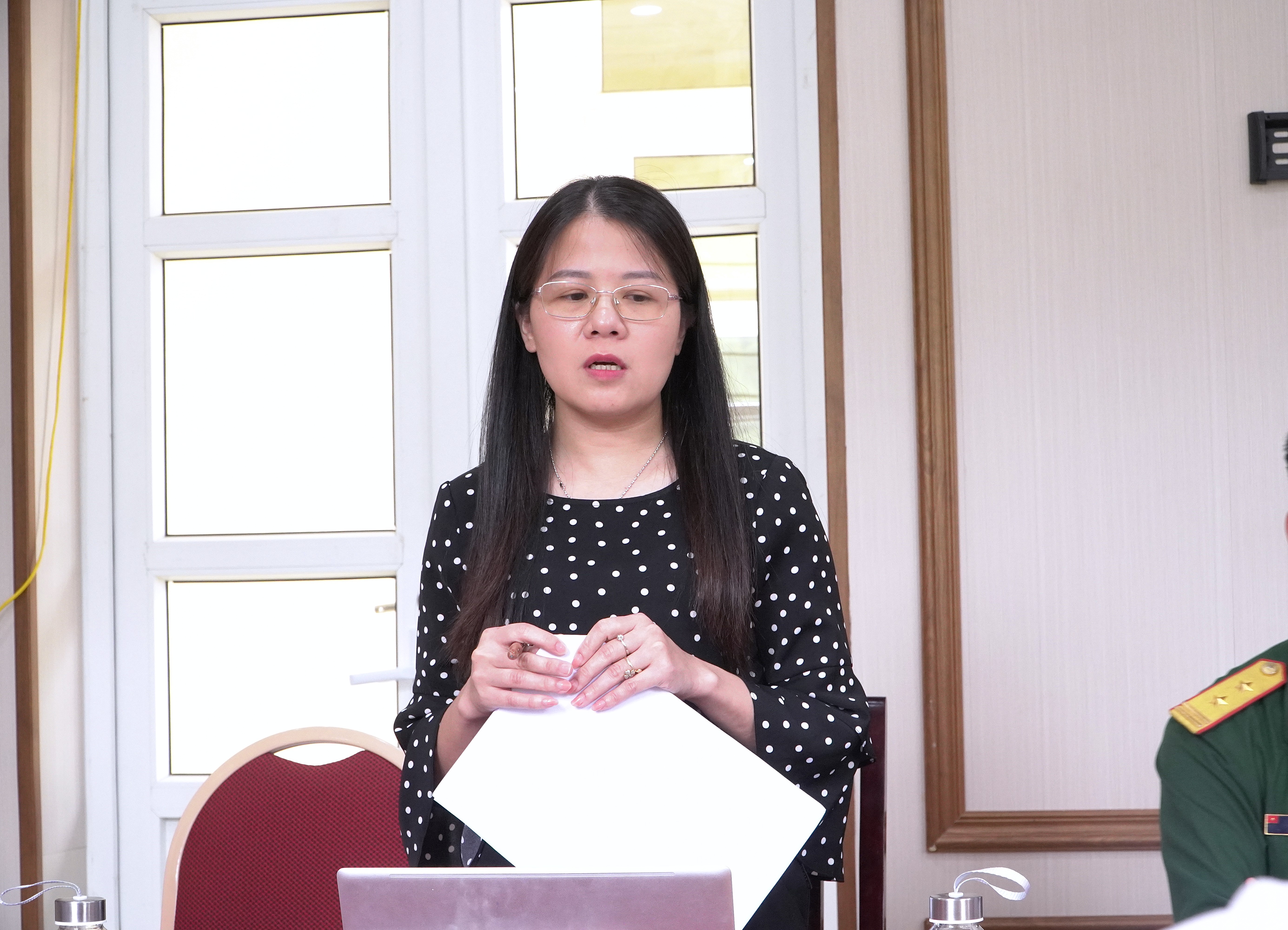 (Đồng chí Lê Văn Hợi - ĐUV, Chánh văn phòng Đảng ủy trình bày báo cáo quý I, phương hướng nhiệm vụ quý II năm 2026)