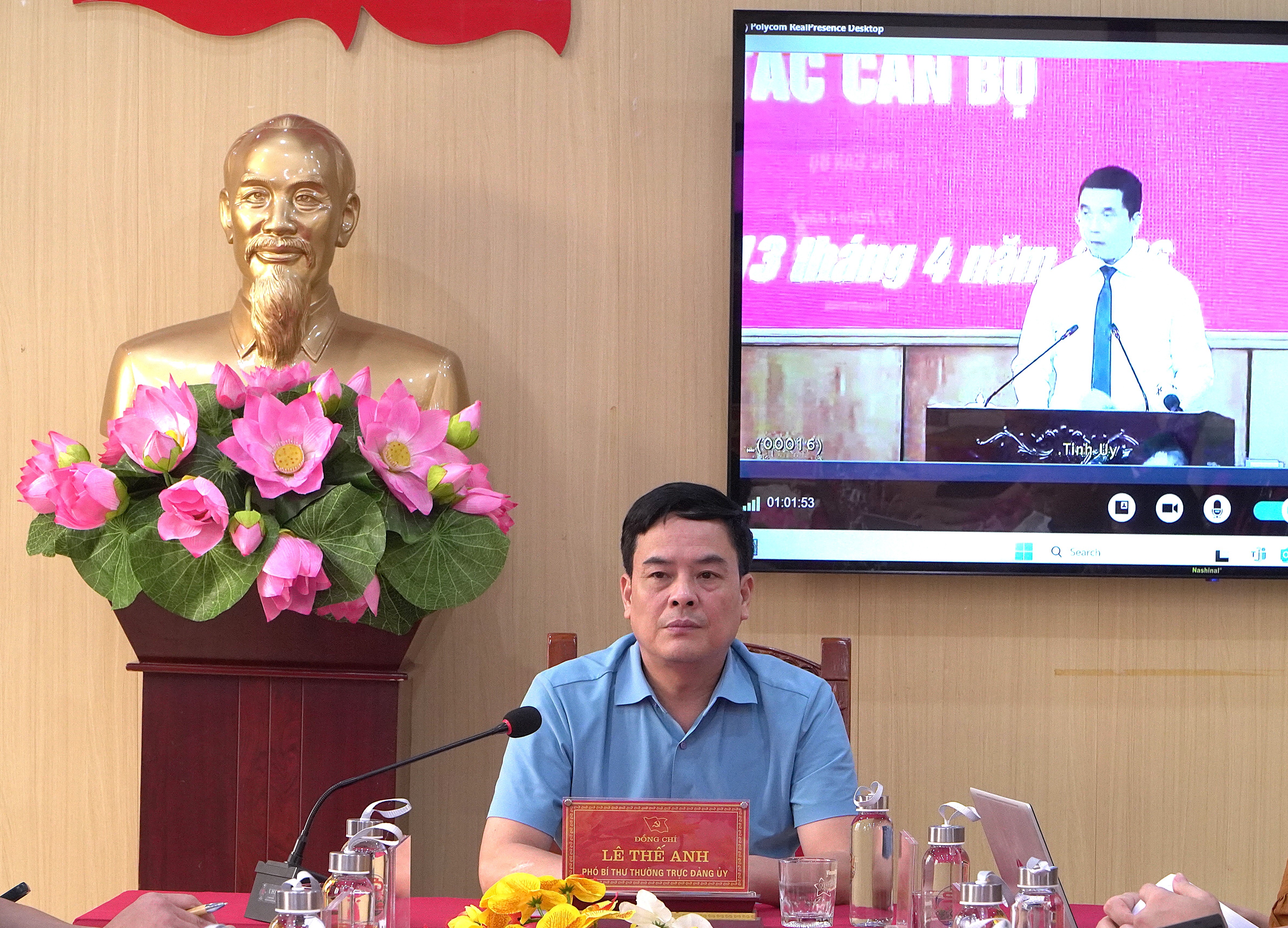 Về phía tỉnh Thanh Hóa có các đồng chí: Nguyễn Hoài Anh, Ủy viên Trung ương Đảng, Phó Bí thư Tỉnh ủy, Chủ tịch UBND tỉnh; Nguyễn Hồng Phong, Ủy viên dự khuyết Trung ương Đảng, Phó Bí thư Thường trực Tỉnh ủy, Chủ tịch HĐND tỉnh; Trịnh Tuấn Sinh, Phó Bí thư Tỉnh ủy, Chủ tịch Ủy ban MTTQ tỉnh các đồng chí Ủy viên Ban Thường vụ Tỉnh ủy, Ủy viên Ban Chấp hành Đảng bộ tỉnh; Phó Chủ tịch HĐND tỉnh, Phó Chủ tịch UBND tỉnh; lãnh đạo các ban, sở, ngành cấp tỉnh. Hội nghị được tổ chức trực tiếp và kết nối đến các xã, phường trên địa bàn tỉnh.